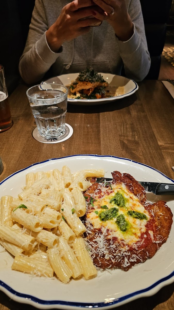 This the first time we visited even though we come to surrey often. The food blew my expectations. The truffle meatball pasta was so creamy and had a very distinct truffle flavour. It wasnt salty which was appropriate. The meatballs were massive and very tender, and rhe marinara sauce complimented perfectly with the truffle cream white sauce. Plus there was basil and a nice portion of parmeshan cheese. The salad, arugula salad, and pizza were also delicious, flavourful, and great portions. Quite expensive but very delicious high end restaraunt and highly recommend. PLUS, they accoodated our dietary restrictions easily, creating custom vegan cheese for the pizza and a vinegarette sauce instead of creame sauce for the salad, because we are lactose intolerant. Will definitely come again!